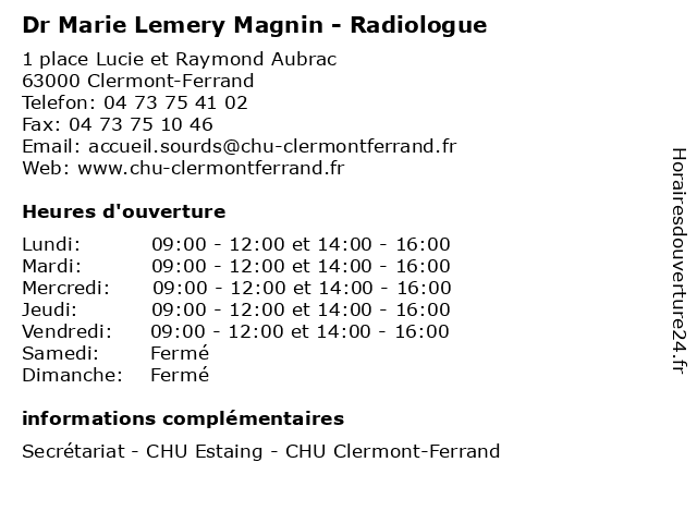 1 Dr Didier Lemery - Gynécologue obstétricien (Distance: 0,00 km) 1 place Lucie et Raymond Aubrac, 63000 Clermont-Ferrand consultation, didier, docteur, dr, gynécologue, lemery, med, médecin, obstétricien, traitement 2 Dr Benoit Magnin - Radiologue (Distance: 0,00 km) 1 place Lucie et Raymond Aubrac, 63000 Clermont-Ferrand benoit, consultation, docteur, dr, magnin, med, medecine, medical, médecin, radiologue, traitement 4 Cabinet Medical du Docteur Georges Michel Antipoff (secrétariat ) (Distance: 3,17 km) - Avenue Evariste Galois, 63000 Clermont Ferrand antipoff, cabinet, consultation, docteur, du, georges, medical, michel, médecins, santé, secrétariat 5 Etablissement Francais Du Sang (Distance: 3,23 km) 58 rue Montalembert, 63058 Clermont Ferrand blood donations, du, etablissement, francais, hospital, medical, office, practical advice, sang 6 Clinique Vet 'Auvergne (Distance: 8,17 km) 48 Rue des Plaines, 63800 Courcon D' Auvergne 'auvergne, auvergne, clinique, medical, services, vet, veterinaires |