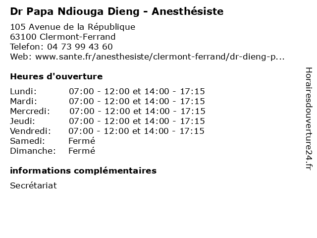 | Lundi | 07:00-12:00 et 14:00-17:15 |