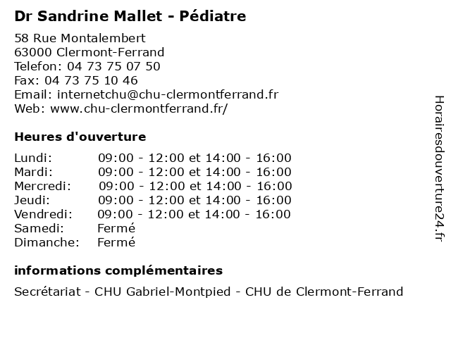 | Mercredi | 09:00-12:00 et 14:00-16:00 |