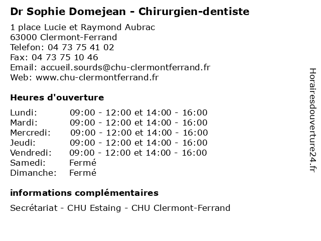 1 Dr Sophie Gonnu-Levallois - Anesthésiste (Distance: 0,00 km) 1 place Lucie et Raymond Aubrac, 63000 Clermont-Ferrand anesthésiste, consultation, docteur, dr, gonnu, levallois, med, médecin, sophie, traitement 2 Dr Sophie Cayot - Anesthésiste (Distance: 0,00 km) 1 place Lucie et Raymond Aubrac, 63000 Clermont-Ferrand anesthésiste, cayot, consultation, docteur, dr, med, médecin, sophie, traitement 3 Dr Anne-Sophie Marchesseau Merlin - Dermatologue (Distance: 2,45 km) 26 Boulevard Charles de Gaulle, 63000 Clermont-Ferrand anne, boutons, cabinet, de, dermatologie, dermatologue, docteur, dr, liason, marchesseau, merlin, sophie, venerologue 4 Anne-Sophie Plantard - Psychologue (Distance: 2,64 km) 1 Rue Maurice Thorez, 63100 Clermont-Ferrand anne, folie, plantard, psychiatre, psychiatrie, psychiatrique, psychologue, sophie 5 Dr Sophie Dubois - Cancérologue médical (Distance: 3,21 km) 58 rue Montalembert, 63011 Clermont-Ferrand cancérologue, consultation, docteur, dr, dubois, med, médecin, médecine, médical, sophie, traitement 6 Dr Sophie Behra Médecin généraliste - secrétariat (Distance: 4,96 km) 29 Rue Joseph Prugnard, 63118 Cébazat behra, consultation, docteur, dr, généraliste, med, médecin, médecine, secrétariat, sophie, traitement |