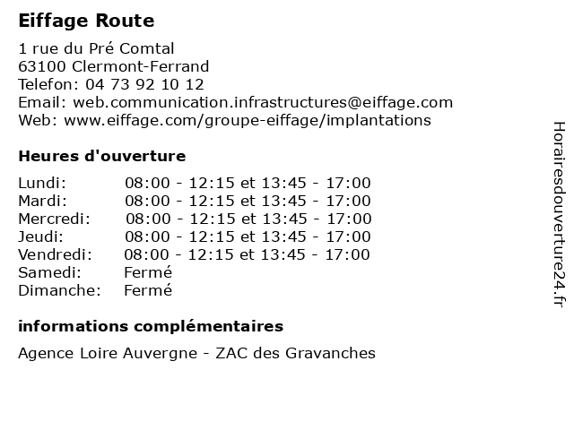 | Lundi | 08:00-12:15 et 13:45-17:00 |
