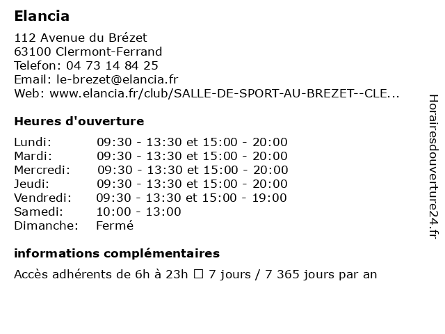 1 Elancia (Distance: 4,25 km) 20 Avenue d'Aubière, 63800 Cournon-d'Auvergne accès, adhérents, cours, elancia, fitness, salle de sport, santé 2 Elancia (Distance: 6,22 km) 10 Avenue de Royat, 63122 Ceyrat accès, adhérents, cours, elancia, fitness, salle de sport, santé 3 Elancia (Distance: 15,46 km) - Centre Commercial Carrefour, 63200 Riom accès, adhérents, cours, elancia, fitness, salle de sport, santé 4 Elancia (Accès Adhérent) (Distance: 2,49 km) 74 Avenue du Roussillon, 63170 Aubière accès, adhérent, cardio, club, elancia, fitness, sport 5 Elancia (Accès au club) (Distance: 2,49 km) 74 Avenue du Roussillon, 63170 Aubière accès, au, cardio, club, elancia, fitness, sport 6 ELANCIA AUBIERE (Distance: 3,74 km) 74 Avenue du Roussillon, 63170 Aubière aubiere, de, elancia, salle, sport |