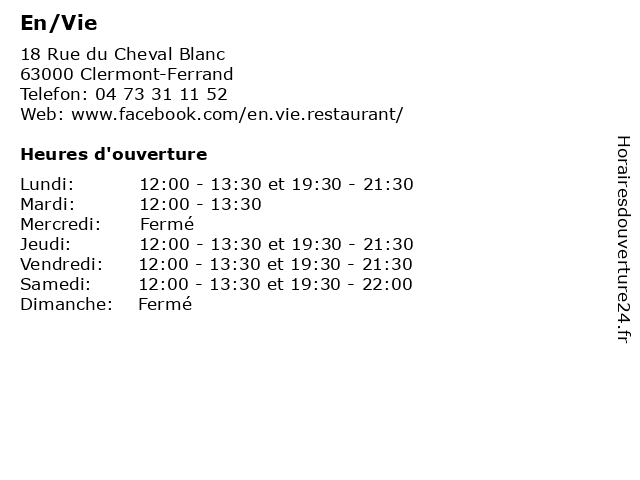 | Jeudi | 12:00-13:30 et 19:30-21:30 |