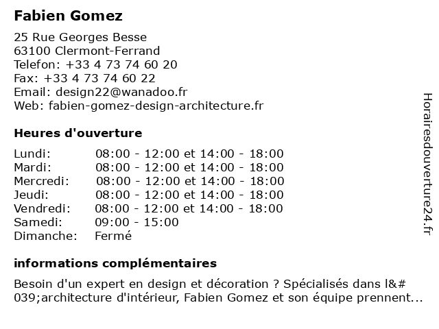 | Lundi | 08:00-12:00 et 14:00-18:00 |