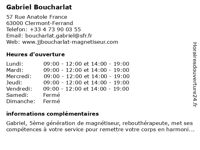 | Lundi | 09:00-12:00 et 14:00-19:00 |