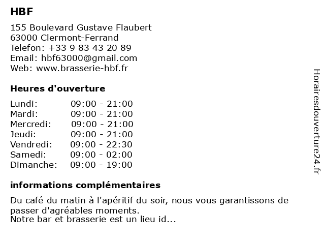 | Samedi | 09:00-02:00 |