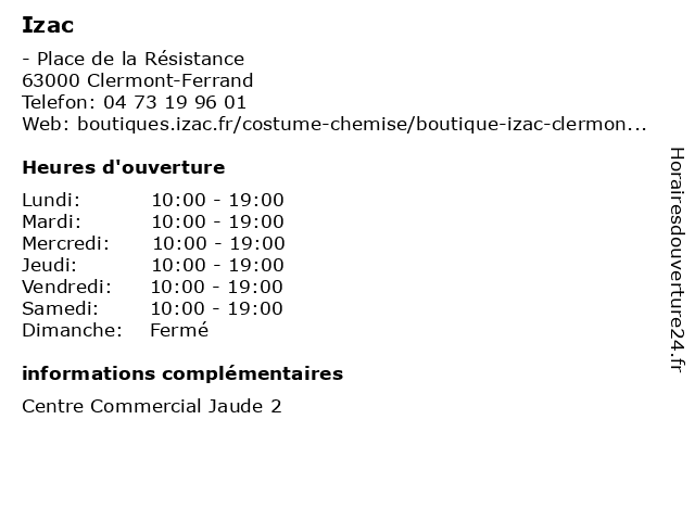 | Dimanche | Fermé |
