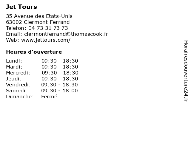 1 Jet Tours (Distance: 1,17 km) 39 Avenue De Royat, 63400 Chamalieres agence, billet d'avion et hôtel pour votre club, jet, séjour, tours, voyage 2 Thomas Cook (Distance: 0,00 km) 35 Avenue des Etats-Unis, 63002 Clermont-Ferrand agence, billet d'avion et hôtel pour votre club, cook, séjour, thomas, thomas cook, voyage 3 Look Voyages (Distance: 0,11 km) 11 Avenue des Etats-Unis, 63000 Clermont agence, billet d'avion et hôtel pour votre club, look, séjour, voyage, voyages 4 Fram Voyages (Distance: 0,33 km) 29 Rue Saint-Genes, 63000 Clermont-Ferrand agence, ambassade, billet d'avion et hôtel pour votre club, fram, séjour, voyage, voyages 5 Havas Voyages (Distance: 0,40 km) 18 Rue d'Allagnat, 63000 Clermont-Ferrand agence, havas, vacances, voyage, voyages 6 APRIL MON ASSURANCE CLERMONT-FERRAND (Distance: 1,09 km) 14 Place des Carmes Dechaux, 63000 Clermont-Ferrand april, assurance, assurance auto, assurance bateau, assurance habitation, assurance moto et 2 roues, assurance obsèques, assurance prévoyance, assurance prêt immobilier, assurance voyage, clermont, complémentaire santé, expatrié et assurance expatriation, ferrand, mon |