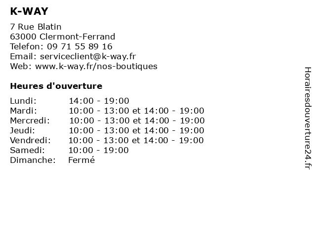 Mercredi | 10:00-13:00 et 14:00-19:00 |