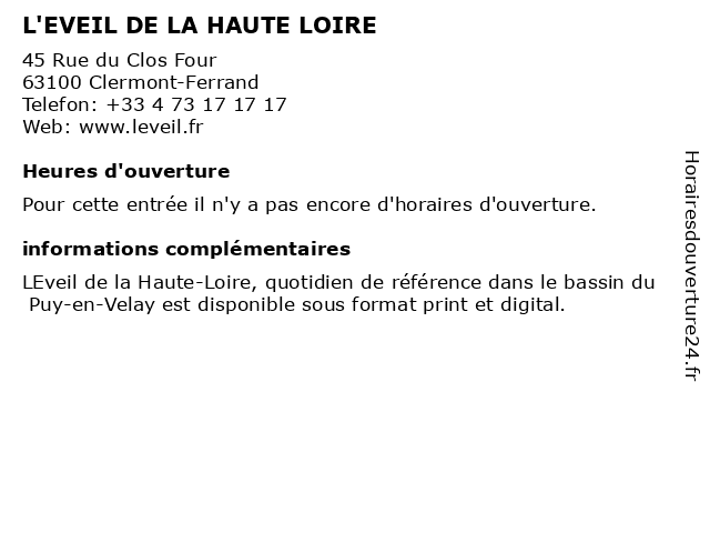 | Appeler L'EVEIL DE LA HAUTE LOIRE | |