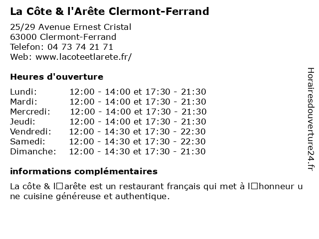 Termes de recherche pour La Côte & l'Arête Clermont-Ferrand:la, bar, clermont, ferrand, cote, restaurant français, l'arête, bar-salon, restaurant de tapas, restaurant de grillades |
