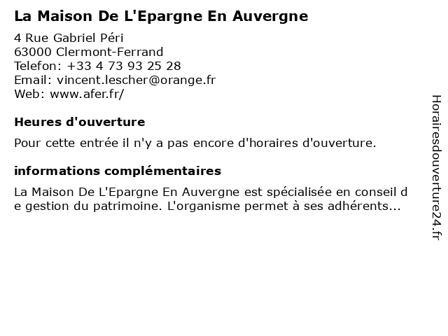 | Appeler La Maison De L'Epargne En Auvergne | |