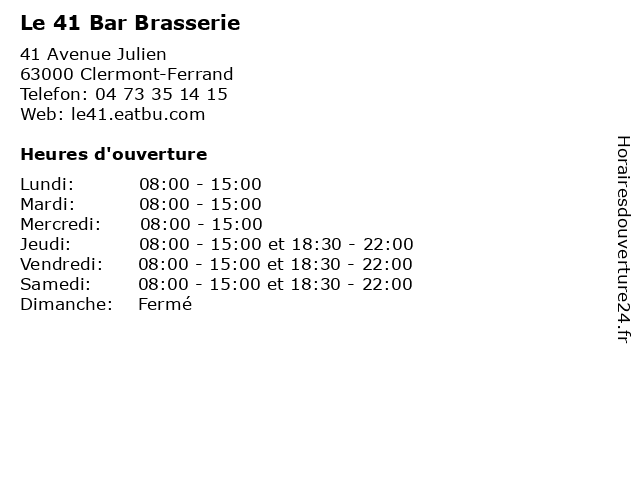 Termes de recherche pour Le 41 Bar Brasserie:restauration, restaurant, le, bar, cuisine, brasserie, les boissons, 41 |