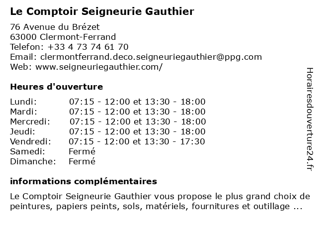 | Lundi | 07:15-12:00 et 13:30-18:00 |