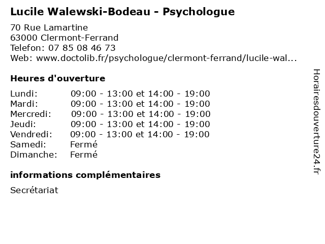 | Lundi | 09:00-13:00 et 14:00-19:00 |