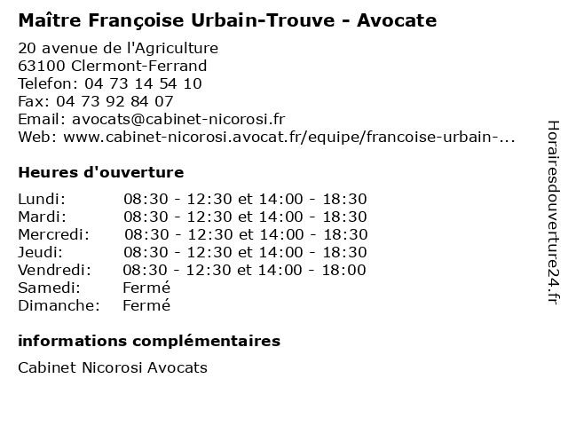 | Lundi | 08:30-12:30 et 14:00-18:30 |