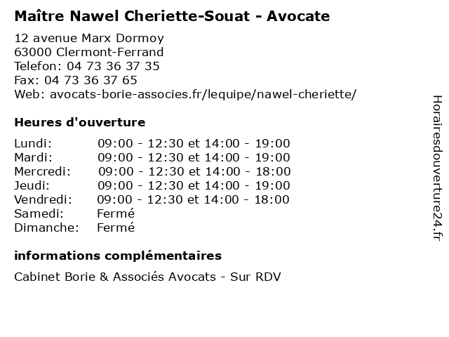 1 Maître Jean Louis Borie - Avocat (Distance: nan km) 12 avenue Marx Dormoy, 63000 Clermont-Ferrand avocat, avocats, borie, cabinet, conseils, contentieux, jean, juridique, justice, litiges, louis, maître, services 2 Maître Edgard Kiganga - Avocat (Distance: nan km) 12 avenue Marx Dormoy, 63000 Clermont-Ferrand avocat, avocats, cabinet, conseils, contentieux, edgard, juridique, justice, kiganga, litiges, maître, services 3 Maître Julie-Eléna Niels - Avocate (Distance: nan km) 12 avenue Marx Dormoy, 63000 Clermont-Ferrand avocate, avocats, cabinet, conseils, contentieux, eléna, julie, juridique, justice, litiges, maître, niels, services 4 AFORMAC (Distance: 0,40 km) 37 Boulevard Aristide Briand, 63000 Clermont-Ferrand aformac, assistance, conseils, création, diplômes, formation 6 Centre D'information Europe Direct Clermont Puy-de-Dôme (Distance: 0,81 km) 2 Rue Saint-Genès, 63000 Clermont-Ferrand centre, clermont, conseils, d'information, de, direct, documentation, dôme, europe, information, propose, puy |