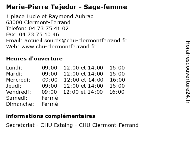 | Samedi | Fermé |