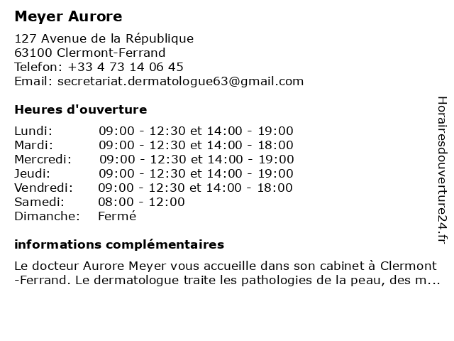 | Mercredi | 09:00-12:30 et 14:00-19:00 |