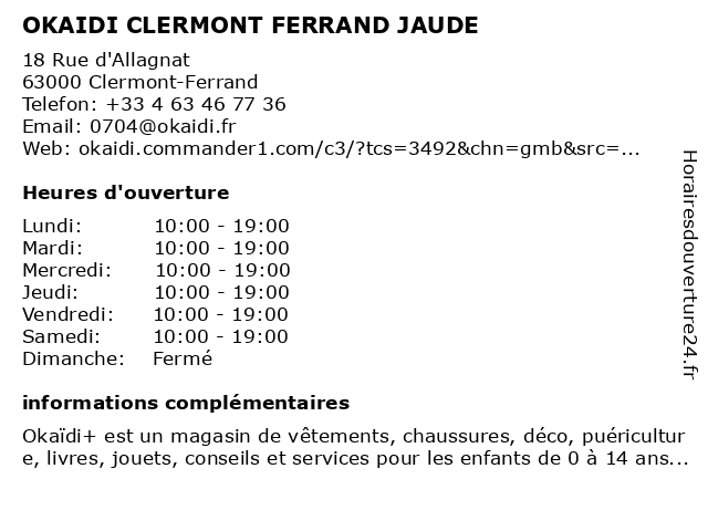 1 Kusmi Tea | Ctre commercial Jaude | Clermont-Ferrand (Distance: 0,03 km) Jaude Shopping Center, 63000 Clermont-Ferrand boutique de cadeaux, clermont, commercial, ctre, ferrand, jaude, kusmi, tea 2 Pharmacie Laporte Centre jaude (Distance: 0,04 km) 18 Rue d'Allagnat, 63000 Clermont-Ferrand centre, jaude, laporte, pharmacie 3 L Auguste Brasserie - Clermont-Ferrand Jaude (Distance: 0,06 km) 2 18 Rue D'allagnat, 63000 Clermont Ferrand auguste, brasserie, clermont, ferrand, jaude 4 Aprium Pharmacie Centre Jaude (Distance: 0,09 km) 18 Rue d'Allagnat, 63000 Clermont-Ferrand aprium, centre, jaude, pharmacie 5 Médiathèque de Jaude (Distance: 0,09 km) 9 Place Louis Aragon, 63000 Clermont-Ferrand bibliothèque, de, jaude, livre, médiathèque, services 6 Onepark / Carrefour - Carré Jaude Parking (Distance: 0,13 km) 14 Place de la Resistance, 63000 Clermont-Ferrand carrefour, carré, jaude, onepark, parking, services |