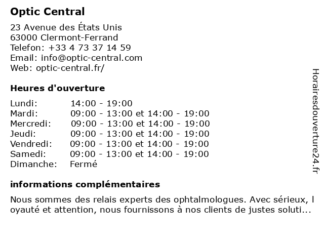 | Samedi | 09:00-13:00 et 14:00-19:00 |
