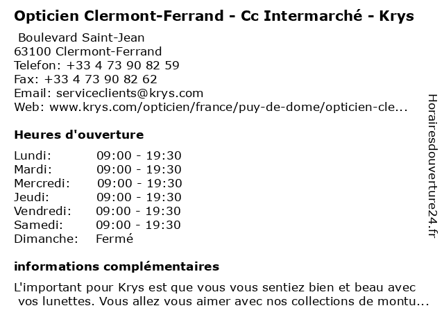 Termes de recherche pour Opticien Clermont-Ferrand - Cc Intermarché - Krys:clermont, ferrand, intermarché, opticien, krys, cc |