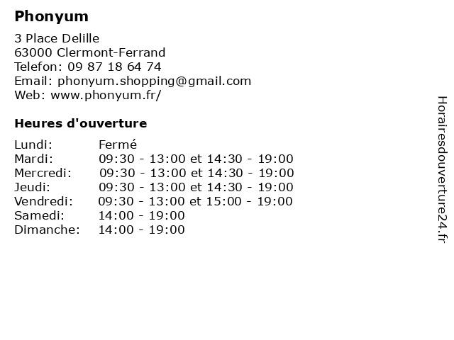 | Vendredi | 09:30-13:00 et 15:00-19:00 |