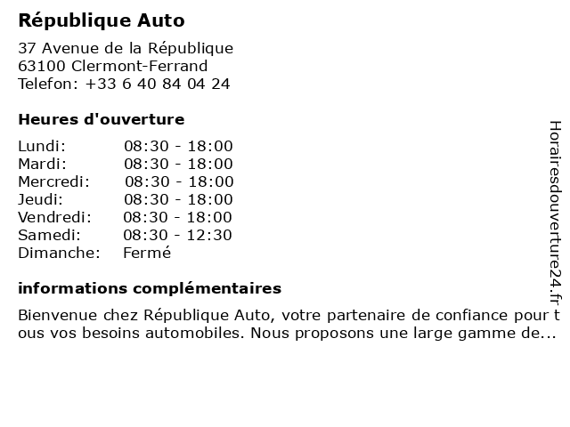 | Lundi | 08:30-18:00 |