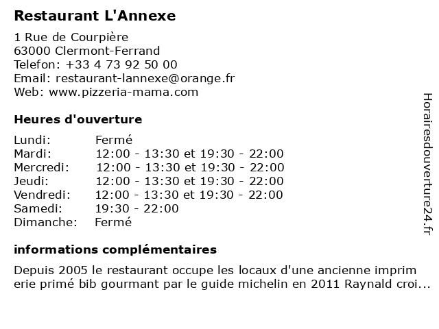 | Mardi | 12:00-13:30 et 19:30-22:00 |