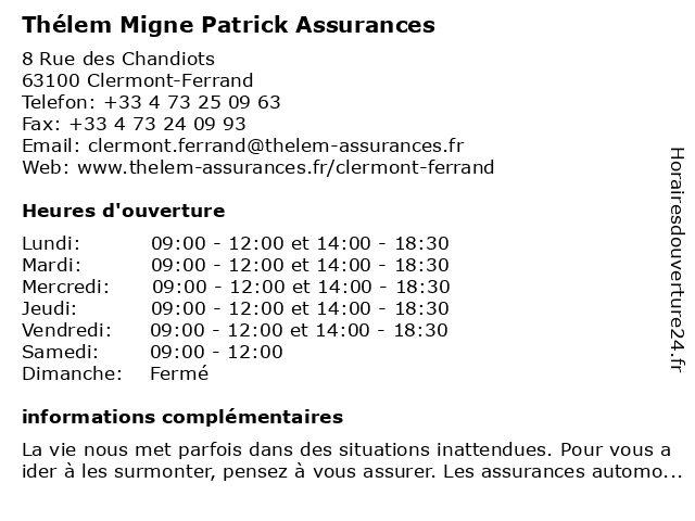 | Lundi | 09:00-12:00 et 14:00-18:30 |