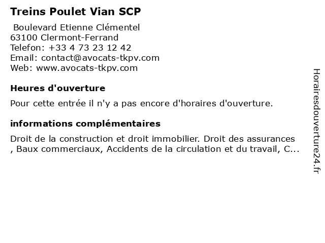 2 Treins Jean-pascal (Distance: 0,08 km) Boulevard Etienne Clémentel, 63100 Clermont-Ferrand jean, pascal, treins 3 Poulet Francois (Distance: 0,09 km) Boulevard Etienne Clémentel, 63100 Clermont-Ferrand francois, poulet 4 SCP COLLET DE ROCQUIGNY CHANTELOT BRODIEZ GOURDOU (Distance: 4,01 km) 126 Rue Armand Fallières, 63100 Clermont-Ferrand brodiez, chantelot, collet, de, gourdou, rocquigny, scp 5 CANIS ET ASSOCIES SCP (Distance: 4,20 km) 5 Rue Jean Rochon, 63000 Clermont-Ferrand associes, canis, et, scp 6 Villatte Jacqueline Dessert Virginie SCP (Distance: 4,64 km) 14 Avenue Julien, 63000 Clermont-Ferrand dessert, jacqueline, scp, villatte, virginie |
