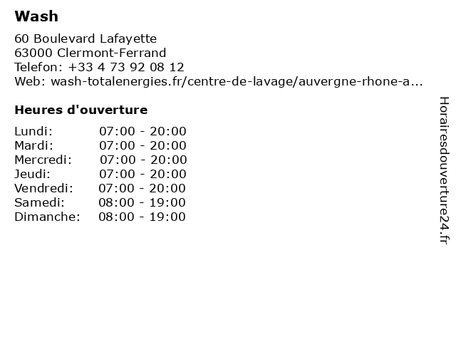 1 Wash (Distance: 1,37 km)8 Boulevard Winston Churchill, 63000 Clermont-Ferrand wash
