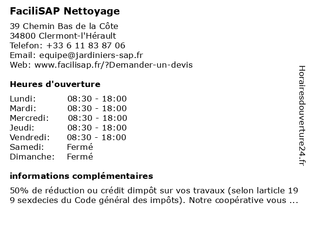 | Lundi | 08:30-18:00 |
