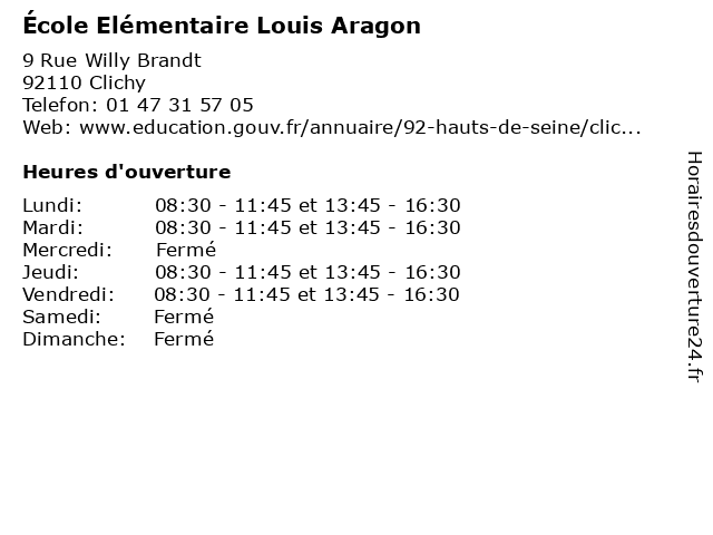 | Mardi | 08:30-11:45 et 13:45-16:30 |