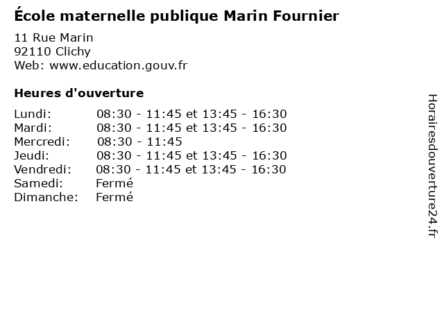 | Mardi | 08:30-11:45 et 13:45-16:30 |