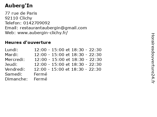 | Mardi | 12:00-15:00 et 18:30-22:30 |