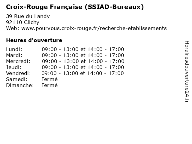 | 1 Croix-Rouge Française (SSIAD-Bureaux) (Distance: 3,65 km) 196 Boulevard Gallieni, 92390 Villeneuve-La-Garenne aide, bureaux, croix, française, prévention, rouge, rééducation, santé, services, ssiad 2 Croix-Rouge Française (SSIAD-Bureaux) (Distance: 5,06 km) 38 Rue Jean Jaures, 92800 Puteaux aide, bureaux, croix, française, prévention, rouge, rééducation, santé, services, ssiad 3 Croix-Rouge Française (SSIAD-Bureaux) (Distance: 9,06 km) 11 Rue Vaudetard, 92130 Issy-les-Moulineaux aide, bureaux, croix, française, prévention, rouge, rééducation, santé, services, ssiad 4 Croix-Rouge Française (SSIAD-Bureaux) (Distance: 11,58 km) 86 Grande Rue, 92310 Sevres aide, bureaux, croix, française, prévention, rouge, rééducation, santé, services, ssiad 5 Croix-Rouge Française (SSIAD-Bureaux) (Distance: 11,83 km) 115 Avenue de la République, 78500 Sartrouville aide, bureaux, creche, croix, française, prévention, rouge, rééducation, santé, services, ssiad 6 Croix-Rouge Française (SSIAD-Bureaux) (Distance: 13,06 km) 2 Boulevard de la République, 92260 Fontenay-aux-Roses aide, bureaux, croix, française, prévention, rouge, rééducation, santé, services, ssiad |
