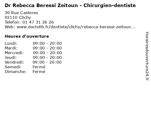 1 Maître Rebecca Lahoud-Heilbronner - Avocate (Distance: 2,21 km) 43 rue de Courcelles, 75008 Paris avocat, avocate, droit, heilbronner, lahoud, maître, négociation, rebecca 2 Dr.Alain Zeitoun - Dentiste (Distance: 2,47 km) 4 Place J Froment, 75018 Paris consultation, dentiste, docteur, dr.alain, santé, zeitoun 3 Zeitoun Mike John Nathan (Distance: 2,75 km) 52 b Boulevard Du General Leclerc, 92200 Neuilly Sur Seine john, mike, nathan, restaurants, zeitoun 4 Dr Johanna Zeitoun - Chirurgien plasticien et esthétique - secrétariat (Distance: 3,05 km) 53 Rue Victor Hugo, 92400 Courbevoie chirurgien, consultation, docteur, dr, esthétique, et, johanna, med, médecin, médecine, plasticien, secrétariat, traitement, zeitoun 6 Dr Laura Zeitoun Saal - Chirurgien-dentiste (Distance: 3,63 km) 45 Avenue George V, 75008 Paris chirurgien, dentiste, dr, laura, médecin, médecine, médical, pharmaceutique, saal, secrétariat, traitement, zeitoun |