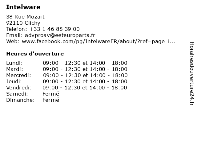 | Lundi | 09:00-12:30 et 14:00-18:00 |