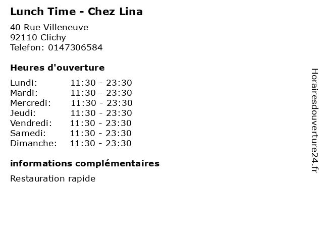 | Dimanche | 11:30-23:30 |