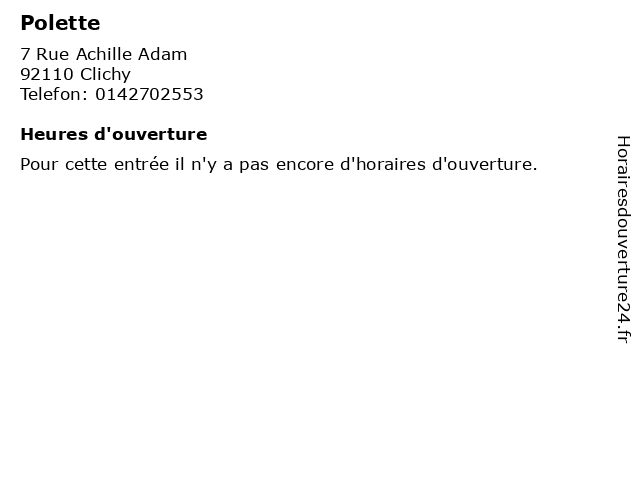 1 Polette brasserie clichy (Distance: 0,10 km) 115 Boulevard Victor Hugo, 92110 Clichy brasserie, clichy, polette |