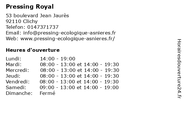 | Vendredi | 08:00-13:00 et 14:00-19:30 |