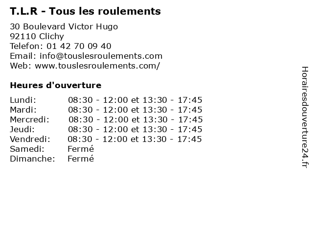 | Lundi | 08:30-12:00 et 13:30-17:45 |