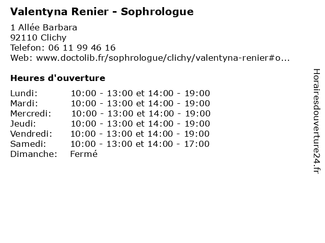 | Lundi | 10:00-13:00 et 14:00-19:00 |