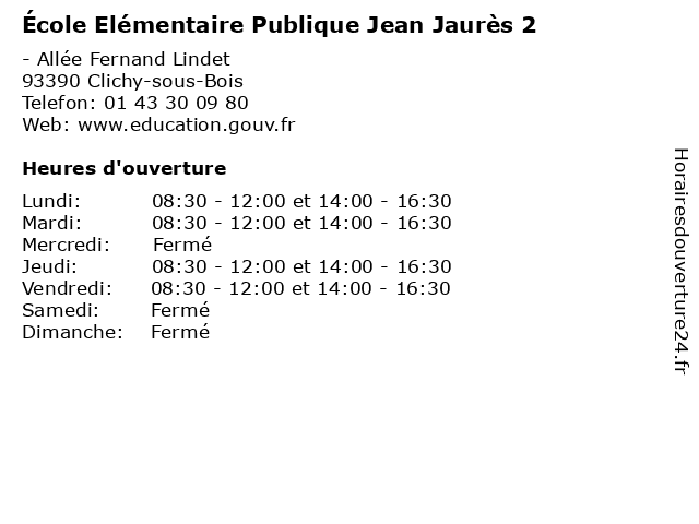 | Mardi | 08:30-12:00 et 14:00-16:30 |