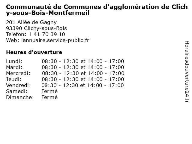 Termes de recherche pour Communauté de Communes d'agglomération de Clichy-sous-Bois-Montfermeil:bois, sous, de, clichy, montfermeil, administration, communes, communauté, services publics, d'agglomération |