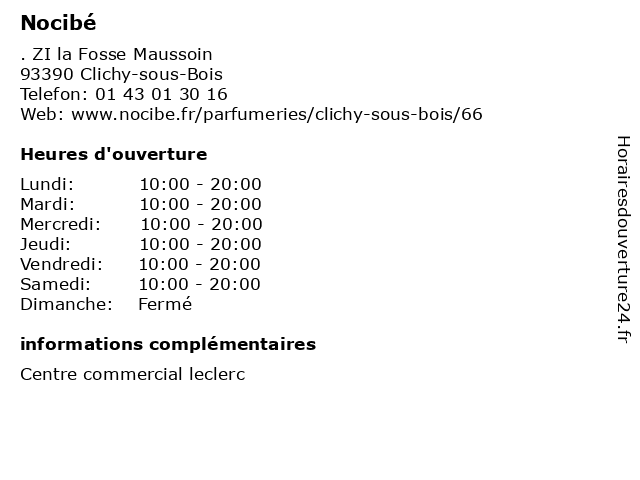 1 Nocibé (Distance: 5,06 km) . Avenue du Général-de-Gaulle, 93117 Rosny-Sous-Bois beauté, cosmétiques, esthétique, nocibé, parfumerie, parfums, soins 2 Nocibé (Distance: 12,25 km) s/n rue du Général de Gaulle, Centre Commercial Régional Bay 2, 77090 Collégien cosmétiques, nocibé, produits cosmétiques, produits de beauté, soins du corps 3 Nocibé (Distance: 12,56 km) 85 Route de Provins, 94436 Chennevieres accessoires, beauté, cheveux, hygiène, maquillage, nocibé, parfum, senteur, soins 4 Nocibé (Distance: 15,17 km) 101 Avenue du Général de Gaulle, 94012 Creteil alimentation, beauté & santé, culture & loisirs, enfants, high-tech, maison & déco, mode, nocibé, restaurants 5 Nocibé (Distance: 15,21 km) - Avenue de la France libre, 94000 Creteil beauté, cosmétiques, esthétique, nocibé, parfumerie, parfums, soins 6 Nocibé (Distance: 15,42 km) 167 boulevard Victor Hugo, 92110 Clichy beauté, boutique, institut, magasin, nocibé, parfum, parfumerie, santé, soins |