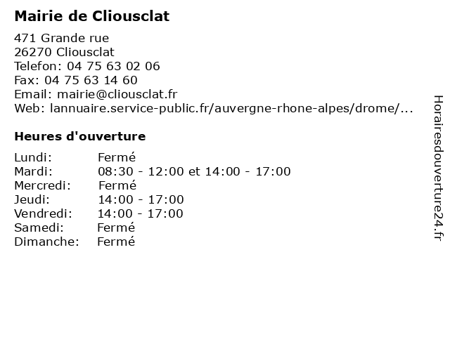 Termes de recherche pour Mairie de Cliousclat:de, administration, mairie, assoc public, cliousclat |