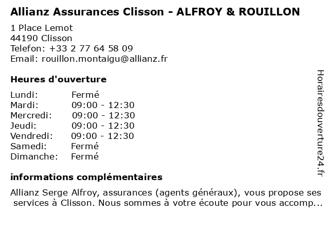 Termes de recherche pour Allianz Assurances Clisson - ALFROY & ROUILLON:clisson, assurances, allianz, rouillon, alfroy |