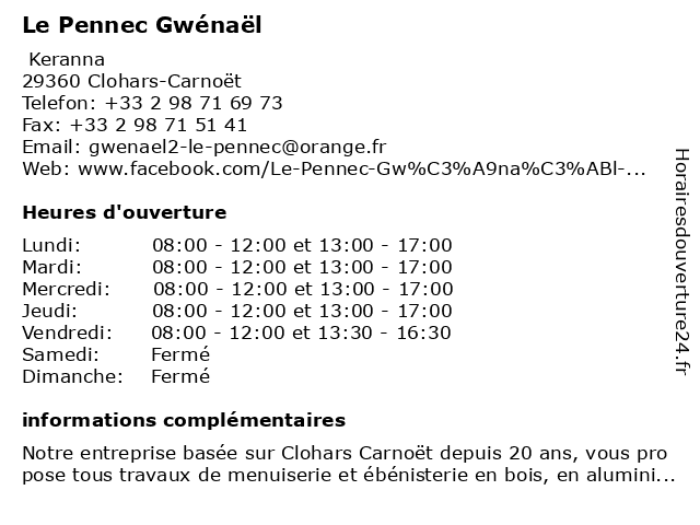 | Lundi | 08:00-12:00 et 13:00-17:00 |